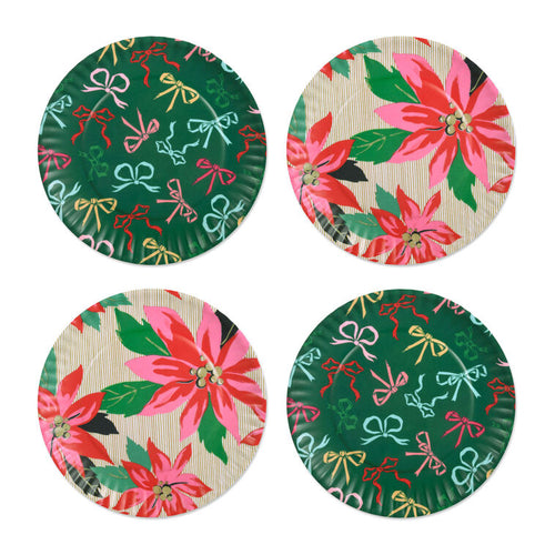 Hallmark Lacey Chabert Collection Bow and Poinsettia Appetizer Plates, Set of 4