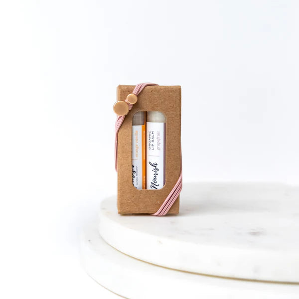 Grapefruit + Orange Vanilla — A bright, citrusy duo perfect for keeping your lip care fresh and fun. Switch them up depending on your mood!
