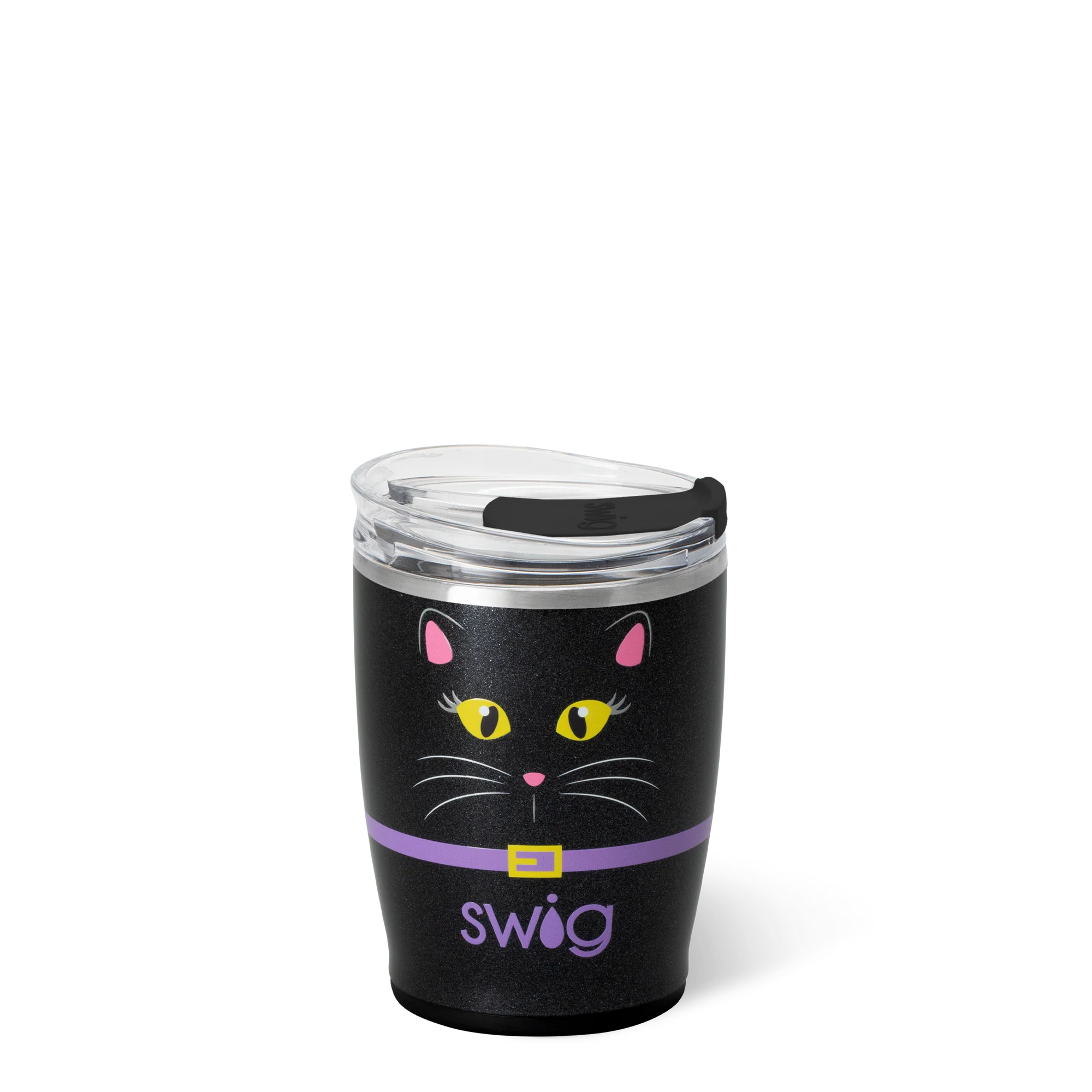Get going and get sipping! 💧 This black cat character comes to life with its long whiskers and bold eyes on a glitter black background.