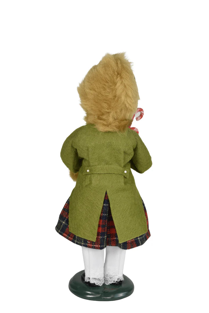 This handcrafted Byers’ Choice Candy Cane Family Girl Caroler is festive and perfect for the Christmas holiday season. Dressed in charming Victorian green, she holds her candy canes with delight, embodying the sweet traditions and innocence of Christmas. A reminder of your daughter, niece or granddaughter is a delightful addition to your Christmas decorations.
