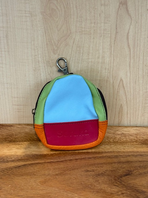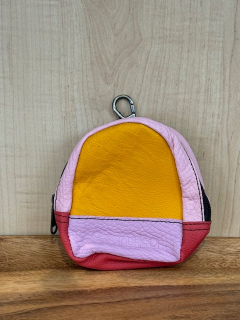 Beautiful Eco-Friendly Handcrafted Mini Backpack Pouch made with Authentic Recycled Leather.